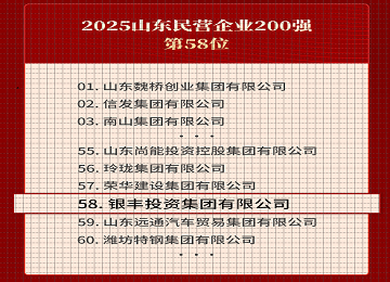 銀豐集團成立于1999年,是一家從事實業投資經營為主,兼顧資本運營的控股企業集團公司。 現已構建以房地產開發、生物工程、物業管理、金融投資為主要支柱,涵蓋貿易、酒店管理、電子商務、醫療機構建設運營等領域的多元業務體系。旗下擁有遍及全國的百余家法人主體,已形成布局全國走向世界的戰略趨勢。
